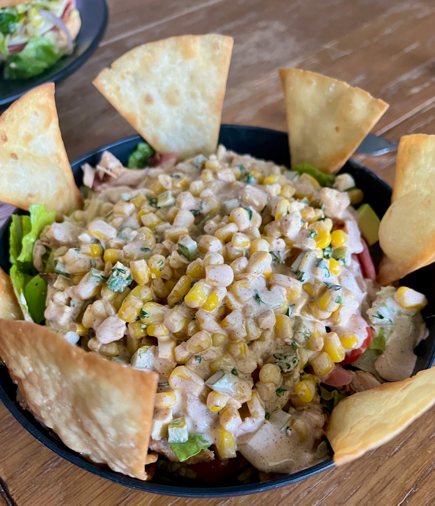 This salad is loosely based on a salad served at one of our favorite local cafes. We learned how to make it ourselves so we could have it whenever we want! The street corn salsa and creamy chili-lime dressing add a nice punch to this fresh, healthy, and flavorful salad. Enjoy!