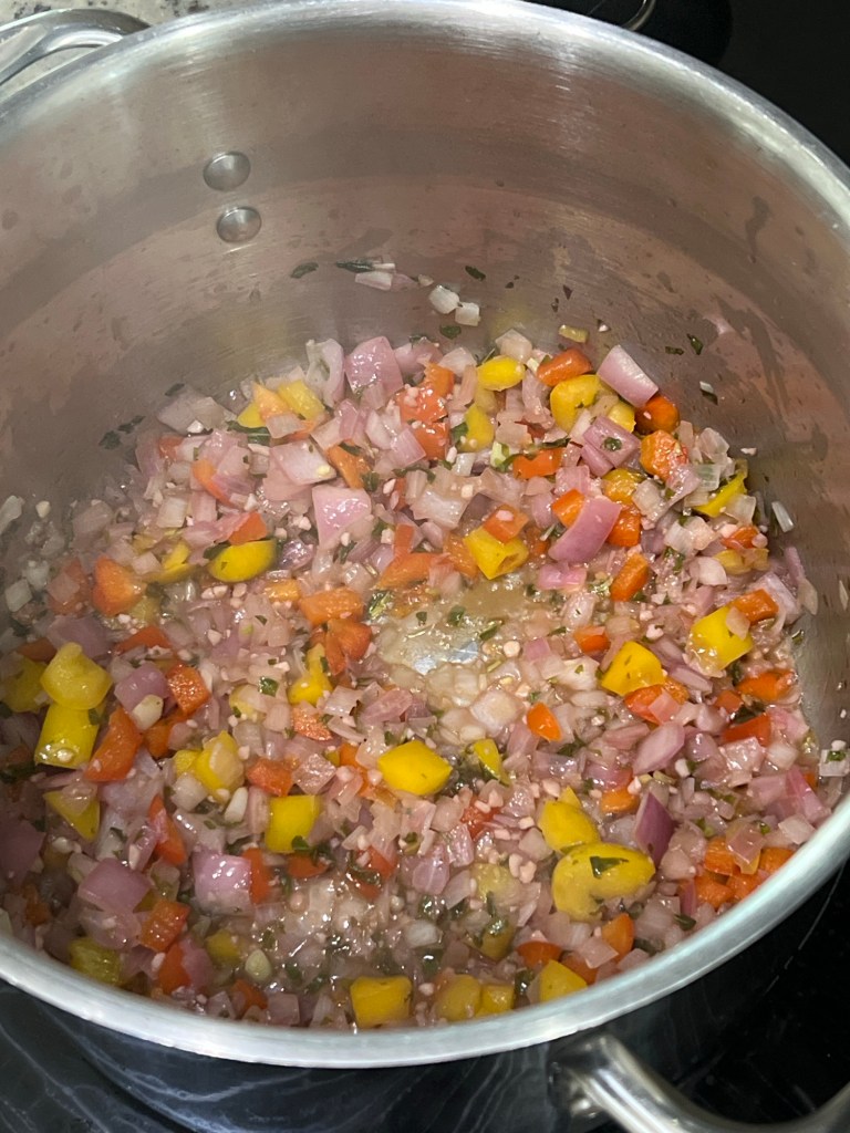 - Chop all of your vegetables. I use a mix of chop sizes, but you do you.
